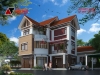 Mặt bằng mái ngói mẫu nhà chữ L 3 tầng đẹp