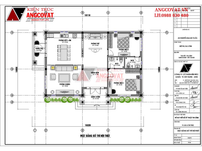 Trên đây là bộ hồ sơ thiết kế nhà trệt đẹp hiện đại của gia đình chú Thuấn ở Bắc Giang do kiến trúc sư Angcovat triển khai thực hiện. Ngôi nhà theo phong cách kiến trúc hiện đại với 2 phòng ngủ, 1 phòng khách tiện nghi đẳng cấp.
