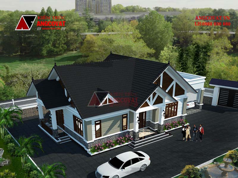 Mẫu nhà vườn trệt hiện đại đẹp mái thái sang trọng lịch lãm