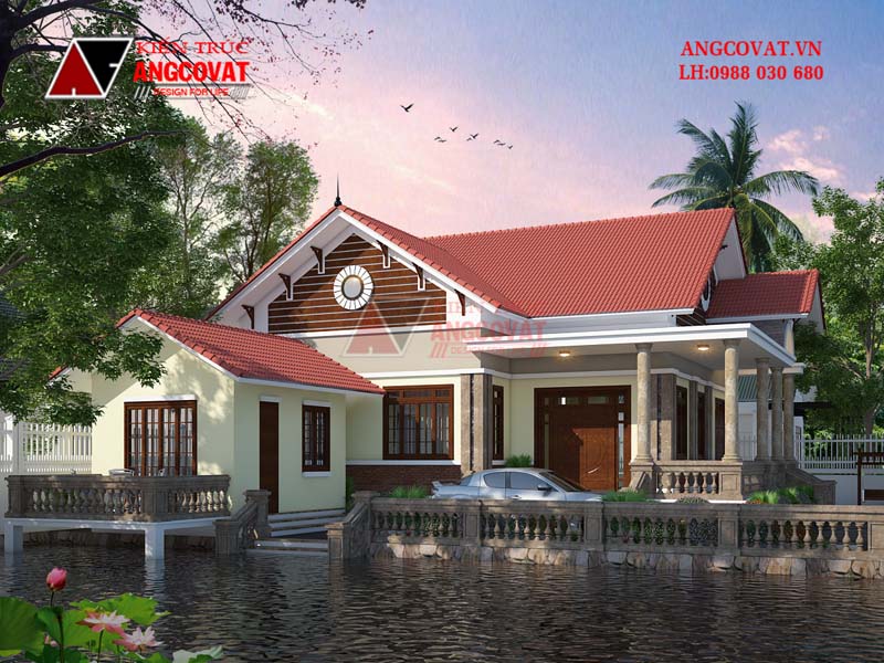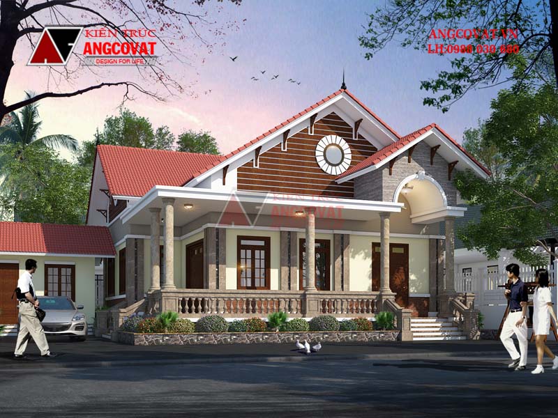 Phối cảnh: Mẫu thiết kế biệt thự 160m2 1 tầng mái ngói
