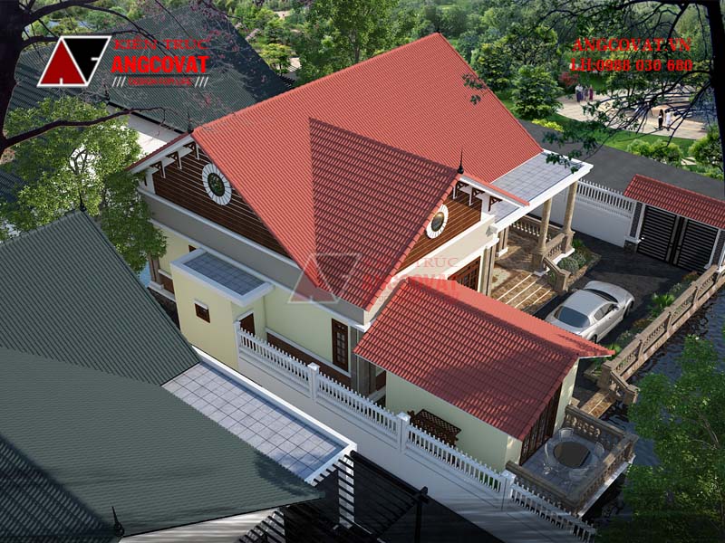 Mái thái được sử dụng trong những mẫu thiết kế nhà biệt thự vườn là điều rát thường xuyên và phổ biến trong kiến trúc Việt Nam. Hầu hết những ngôi nhà biệt thự vườn 1 tầng , hay thậm chí là những mẫu thiết kế biệt thự 1 tầng cũng được sử dụng kiểu mái như thế này. Bạn có thể tham khảo thêm phương án thiết kế mái thái đẹp trong bài viết dưới đây: Mẫu nhà đẹp 1 tầng giá rẻ . Đặc biệt hơn, kiến trúc mái thái khi ứng dụng trong những ngôi nhà khác nhau lại mang đến những hiệu quả về mặt thẩm mĩ cũng như hình dạng, thiết kế đa dạng hơn cho gia chủ đáp ứng được sở thích của gia đình mình. Kết cấu mái trong khi xây dựng cũng quyết định rất lớn đến khả năng, chi phí mà bạn dự tính bỏ ra xây dựng cho gia đình mình. Với kết cấu mái xây theo kiểu tường thu hồi, lợp vỉ kèo sắt hộp hoặc vỉ kèo gỗ và lợp mái ngói thái, chi phí xây dựng sẽ thấp hơn so với kiểu kiến trúc mái đổ bê tông dán ngói thái. Tuy nhiên về mặt kiến trúc bên ngoài thì sẽ không có gì khác biệt. Bạn hoàn toàn có thể sở hữu một ngôi nhà vơi thiết kế mái vô cùng ấn tượng như mẫu nhà cấp 4 trên.