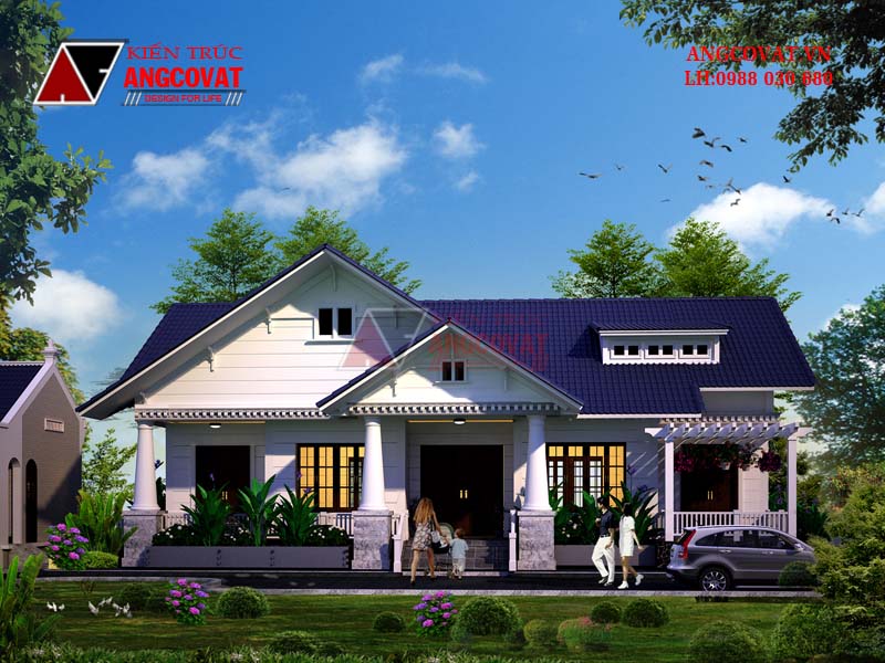 Khi nói đến phong cách biệt thự đồng quê hay nói đơn giản mà kiểu nhà ở quê 1 tầng như mẫu thiết kế này chắc hẳn nhiều người liên tưởng đến ngay sự yên bình với cánh đồng cỏ bao la. Hay không gian vườn rộng lớn với nhiều loại cây cũng như hoa để có thể đắm chìm tâm hồn trong không gian tuyệt vời đó. Hơn nữa trong thiết kế nhà cấp 4 ở quê 220m2/ sàn bạn còn có thể thấy không gian vườn được chúng tôi chia thành từng ô nhỏ với kiểu dáng riêng, nét mềm mại cũng như kích kích thước khác nhau. Nếu như kiểu nhà ở quê phong cách châu Âu thì hệ vườn được tạo thành liền dải hút mắt với màu xanh nhưng trong mẫu nhà ở quê 1 tầng này chúng tôi đã bố trí cách điệu như vậy để cộng hưởng thêm nét lãng mạn cho ngôi nhà