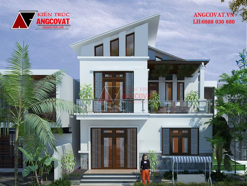 Nhà 2 tầng 90m2 mái lệch được thiết kế mang những đặctrưng của kiến trúc hiện đại, lược bỏ đi những chi tiết trang trí rườm rà của kiến trúc cổ điển, tối giản nhất có thể và mang hình khối vuông vức, chắc khỏe chứ không có những chi tiết cong hay vòm, vì vậy chi phí thiết kế và xây dựng được tiết kiệm so với nhà tân cổ hay cổ điển.