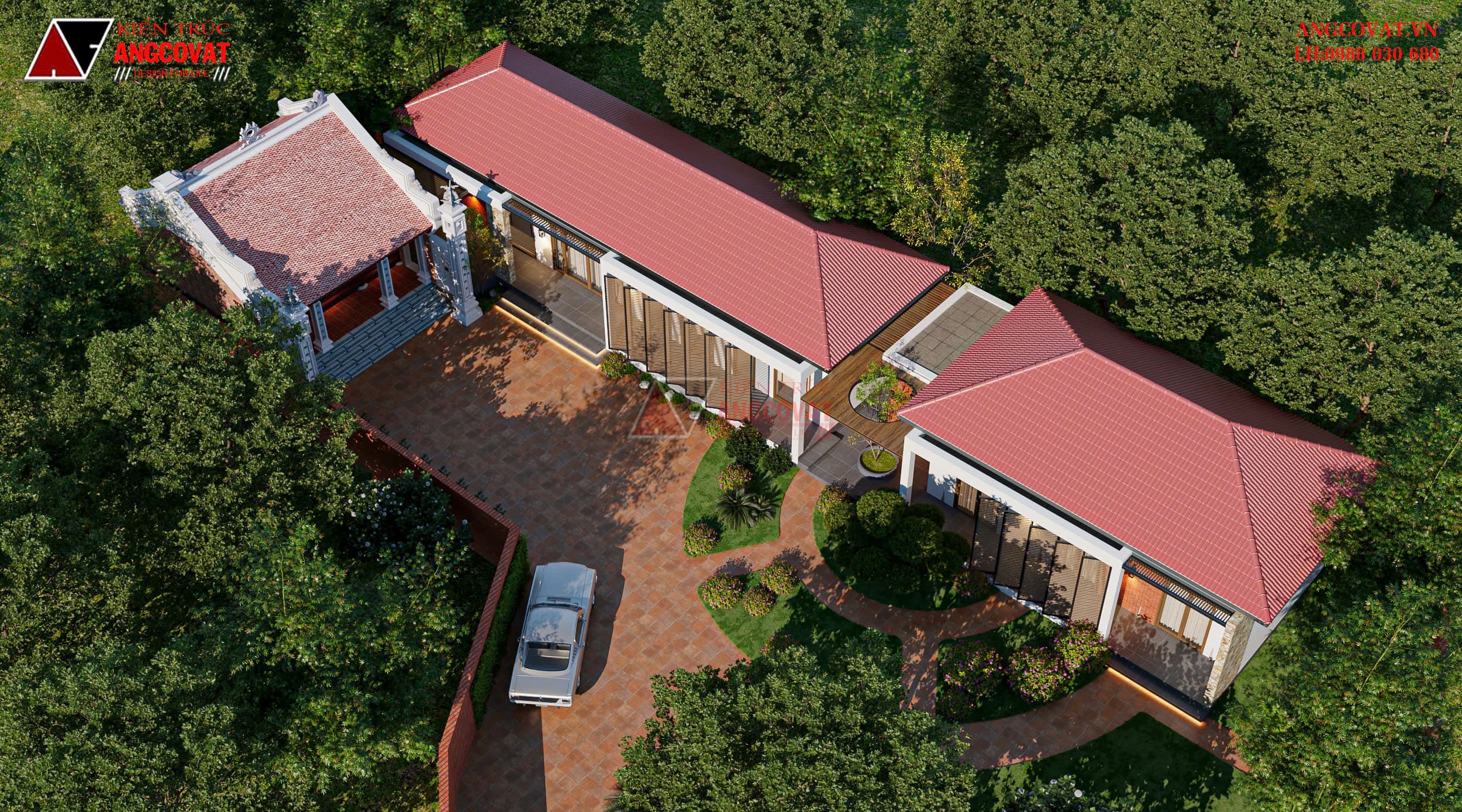 Trong xu hướng xây dựng nhà ở hiện nay, nhà cấp 4 3 phòng ngủ 100m2 đang là lựa chọn tối ưu cho các gia đình Việt bởi sự tiện nghi, chi phí hợp lý và thiết kế gần gũi với thiên nhiên. Đặc biệt, công trình mà Kiến trúc Angcovat giới thiệu dưới đây còn được kết hợp thêm nhà thờ họ 50m2 và khu bếp ăn riêng 70m2, tạo nên không gian sống vừa hiện đại, vừa đậm chất truyền thống.