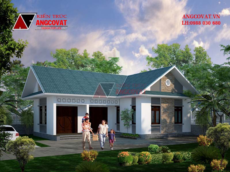 Qua nhiều năm kinh nghiệm thì kiến trúc sư đã lựa chọn dạng mái thái- kiểu mái đáp ứng được nhu cầu về tính thầm mỹ, phong thủy cũng như công năng cho nhà cấp 4 hình chữ l mái thái đẹp diện tích 120m2.