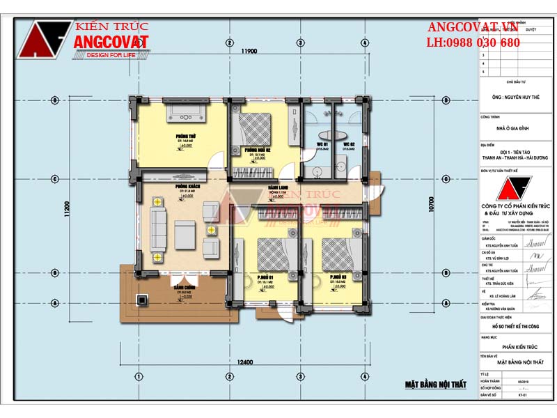 Được sở hữu một ngôi nhà đẹp có lẽ là mong muốn lớn nhất của mỗi gia đình. Nhà đẹp không chỉ thể hiện ở vẻ đẹp bên ngoài mà nó còn phải được thể hiện ở kiến trúc, bố cục và màu sắc ở bên trong ngôi nhà. Với mẫu thiết kế nhà vườn 1 tầng 3 phòng ngủ 1 phòng thờ của kiến trúc Angcovat đã đáp ứng được nhu cầu cầu mà anh Thế đã đưa ra cho chúng tôi và nhận được lời khen từ anh.