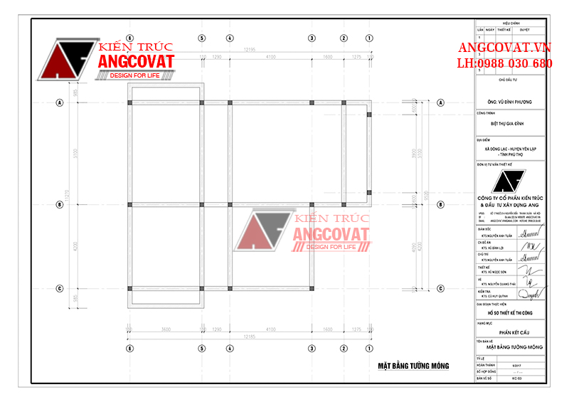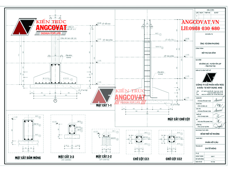 Trong một bộ hồ sơ kỹ thuật thi công cho công trình nhà của angcovat thiết kế gồm đầy đủ các phần kiến trúc, kết cấu, điện, nước, trong đó các phần có mối liên quan chặt chẽ với nhau không thể tách rời và đòi hỏi sự chính xác tuyệt đối ở các phần liên quan đến kỹ thuật vì nó liên quan trực tiếp đến chất lượng của công trình. Với kinh nghiệm thiết kế hàng nghìn mẫu nhà, angcovat cung cấp miễn phí một số bản vẽ kết cấu nhà biệt thự 2 tầng trong một số công trình với chi tiết móng được cho là quan trọng nhất. Nếu các bạn có nhu cầu thiết kế nhà hoặc muốn tham khảo các bản vẽ kết cấu khác hãy liên hệ với hotline để được tư vấn bởi đội ngũ kts, kỹ sư của angcovat.