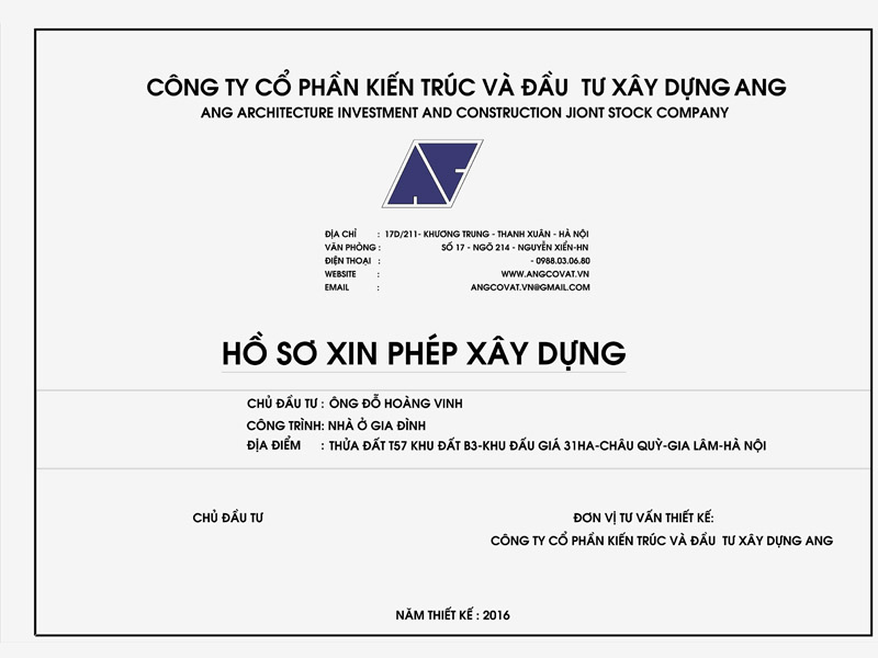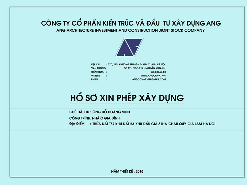 Về cơ bản mẫu bìa hồ sơ xin cấp phép xây dựng nhà ở phải thể hiện được: Tên đơn vị tư vấn, tên Hồ Sơ, chủ đầu tư, công trình, địa điểm đúng với sổ đỏ, và ngày tháng năm thiết kế xin phép.