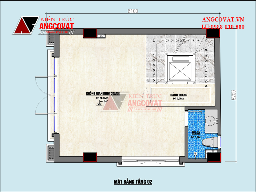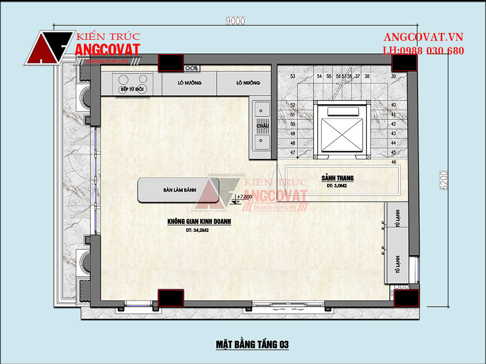 Mặt bằng thiết kế nhà phố tân cổ điển mặt tiền 6m kết hợp kinh doanh
