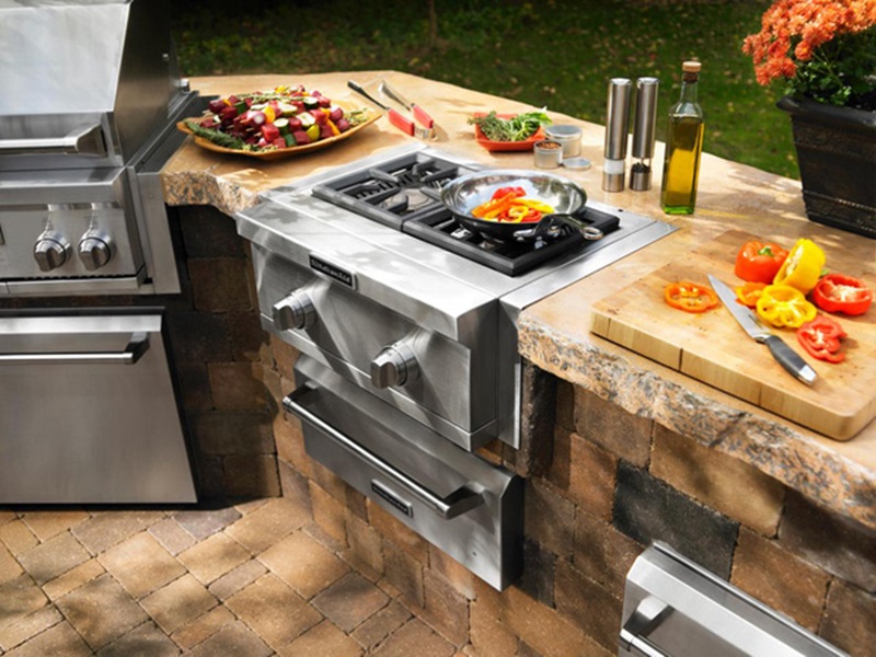 Việc bố trí nhà bếp trên sân thượng làm cho quang cảnh sân thượng đẹp hơn đồng thời phục vụ các nhu cầu nấu ăn gia đình, tiệc tùng, thư giãn. Bạn có thể kết hợp các thiết bị khác như bồn nước, tủ lạnh, ti vi, lò nướng…