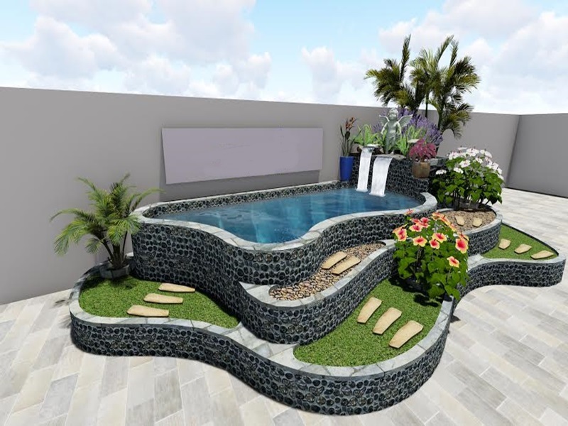 Thiết kế quang cảnh sân thượng bằng hồ bơi có nhiều kiểu dáng để lựa chọn tùy thuộc vào diện tích, hình dáng sân thượng và sự yêu thích của chủ nhà.
