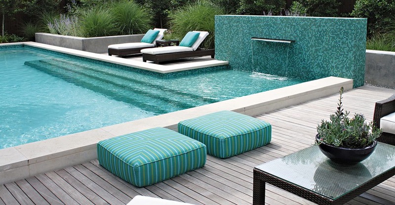 Nền gạch xanh tạo ra cảm giác mát lạnh khi thư giãn tại hồ bơi