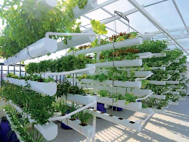 Sử dụng ống nước tạo nên giàn trồng rau sạch trên sân thượng
