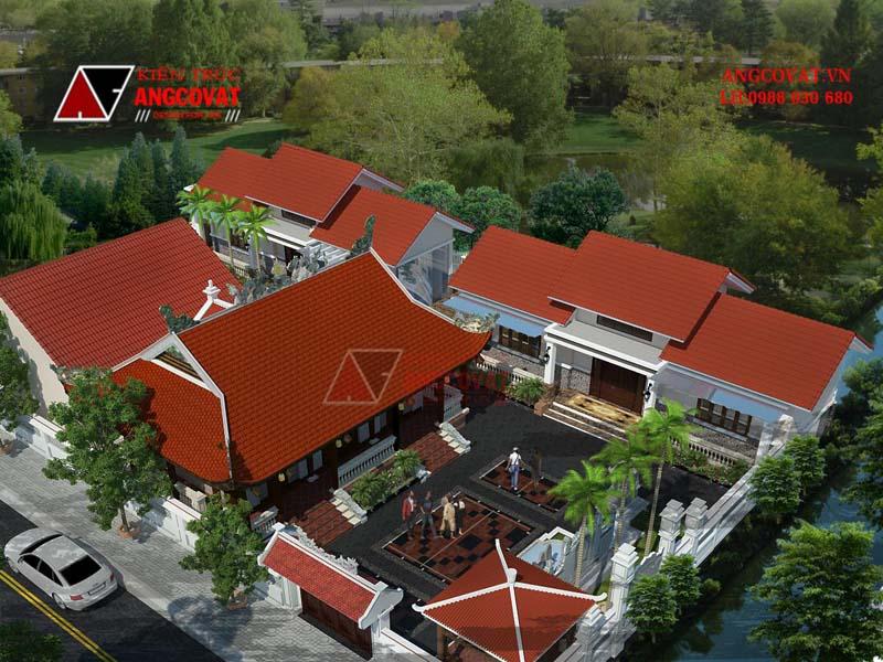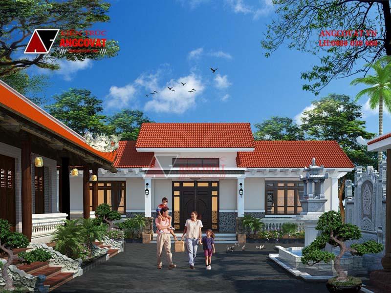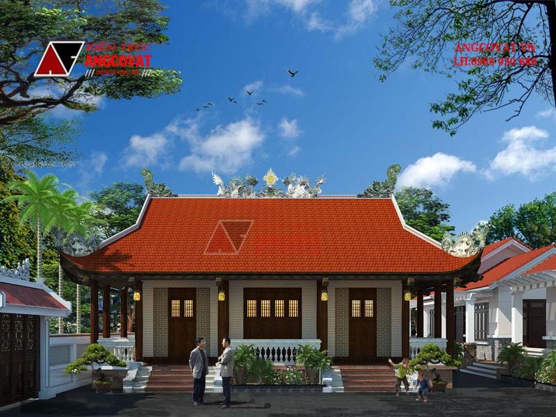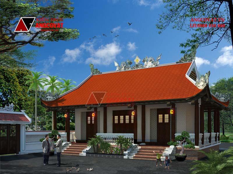 Thiết kế nhà thờ họ mái ngói đỏ đơn giản ở làng quê thanh bình