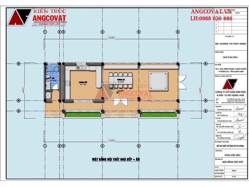 + Mặt bằng nội thất nhà bếp, ăn: Phòng ăn: 35m2, Phòng bếp: 17m2, Wc: 4.9m2.