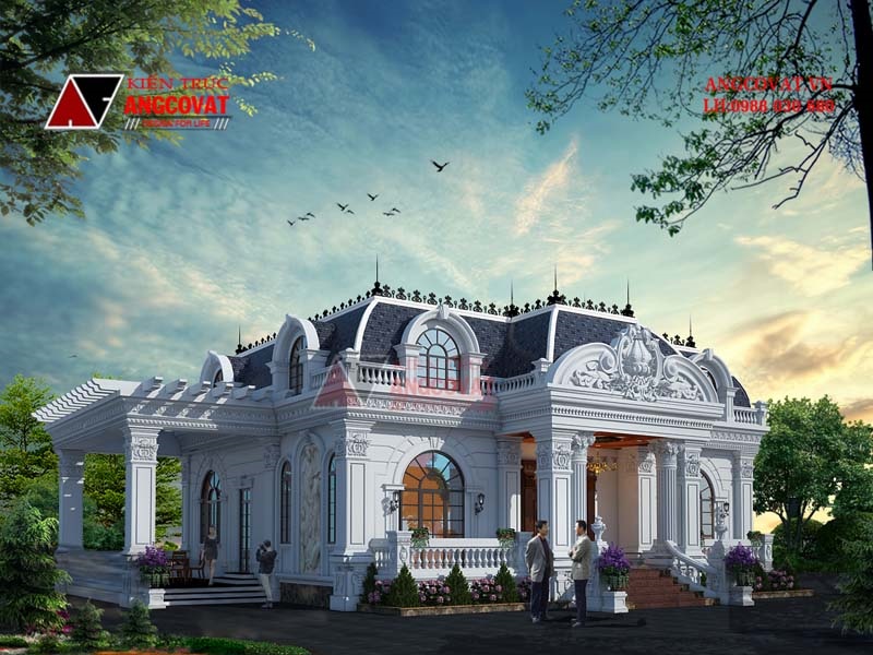 Nắm bắt được yêu cầu cơ bản của chủ đầu tư về mặt công năng, kiến trúc cũng như mức kinh phí mà gia đình có thể bỏ ra, kiến trúc sư ANG đã đưa ra mẫu thiết kế biệt thự cổ điển lâu đài 1 tầng diện tích 300m2. Ngôi biệt thự đã thuyết phục chủ đầu tư không chỉ bởi hệ công năng đáp ứng được nhu cầu mà còn bởi những dấu ấn kiến trúc cổ điển sắc xảo, tráng lệ.