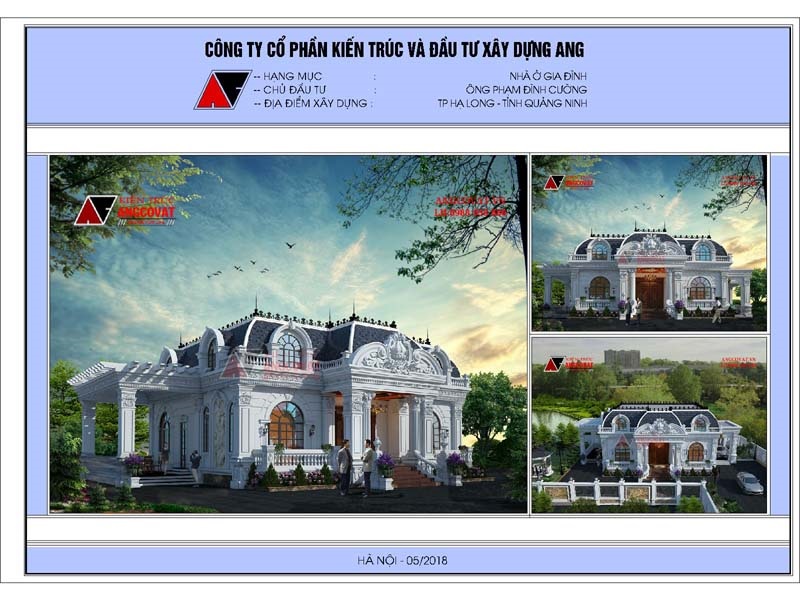 Là một đơn vị có kinh nghiệm nhiều năm trong lĩnh vực thiết kế, có đội ngũ kiến trúc sư chuyên môn cao, có khả năng thiết kế thiên về các lĩnh vực biệt nhà vườn, biệt thự, lâu đài, ANG không hề do dự khi nhận trách nhiệm đồng hành cùng ông Cường trên con đường đi tìm giá trị đích thực cho cuộc sống với mẫu thiết kế biệt thự cổ điển lâu đài 1 tầng 300m2.