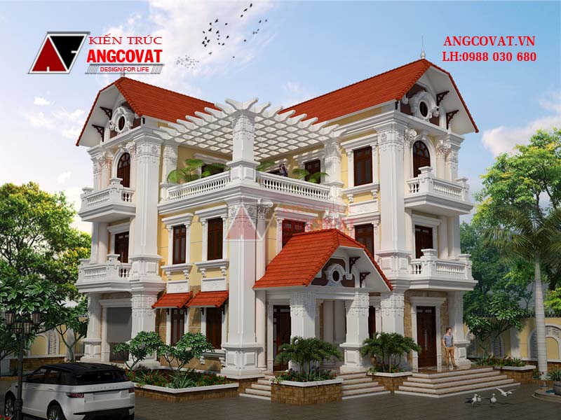 Phối canrh: Mẫu biệt thự nhà vườn 3 tầng 2 mặt tiền phong cách cổ điển