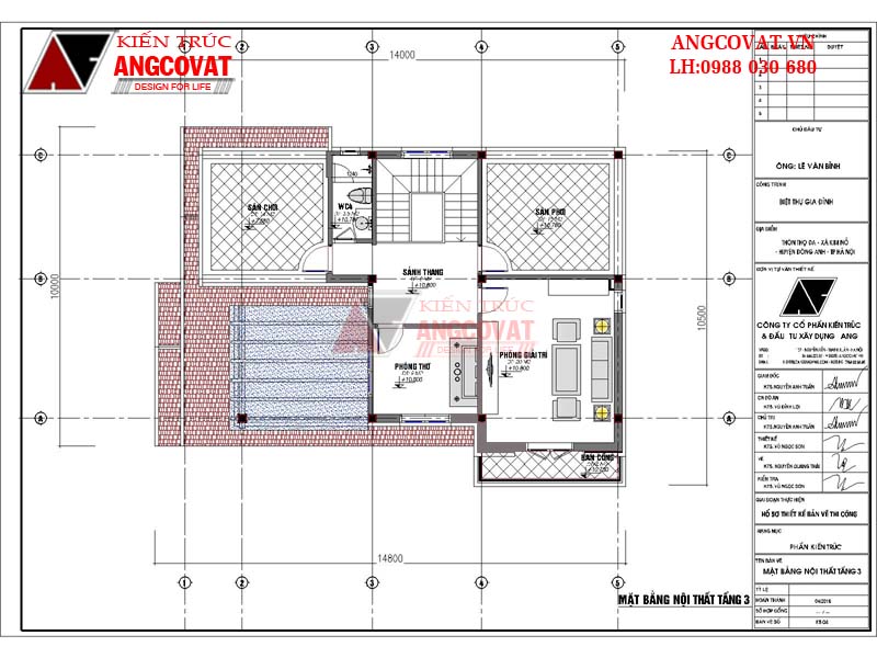 +) Tầng 3: SẢnh tầng 3 ( 15.5m2), Sân chơi ( 45.6m2), Phòng thờ ( 16m2)