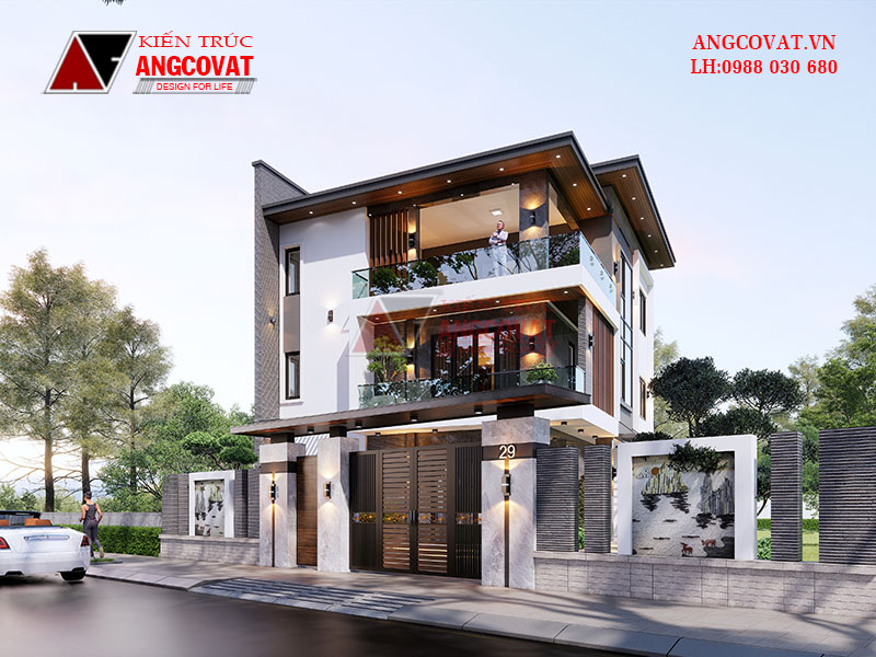 Thiết kế mau biet thu dep đang ngày càng trở thành một phần không thể thiếu trong xây dựng. Đặc biệt, đối với những ngôi nhà có diện tích nhỏ hẹp thì việc thiết kế lại càng trở nên quan trọng để cho kiến trúc vừa thẩm mỹ, lại vừa rộng rãi, thoải mái. Ông Dương ở Quảng NInh có 1 mảnh đất rộng 210m2, muốn xây một căn biệt thự 3 tầng 2 mặt tiền phong cách hiện đại theo lối kiến trúc nhà ở kết hợp kinh doanh với chi phí khoảng 1 tỷ đồng. Với những yêu cầu trên, ông Long đã rất đau đầu để tìm cho ra 1 mẫu biệt thự đẹp khiến ông thật sự ưng ý. Theo số hotline của công ty, ông đã tìm đến ANGCOVAT. Tại đây, ông Dương đã nhận được sự tư vấn, giúp đỡ nhiệt tình của nhân viên công ty. Và các kiến trúc sư ANG đã thiết kế mẫu biệt thự 3 tầng 2 mặt tiền diện tích 70m2 để đáp ứng đầy đủ những yêu cầu của vị khách hàng này. Hãy cùng chúng tôi khám phá những mẫu nhà này, biết đâu bạn cũng sẽ yêu thích và lựa chọn nó là mẫu nhà tương lai cho mình!