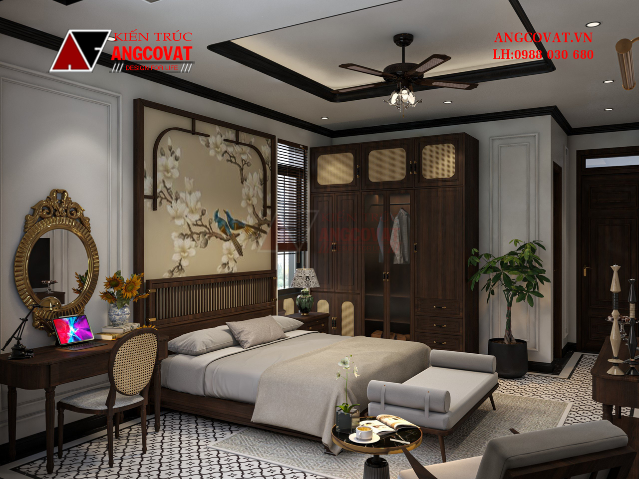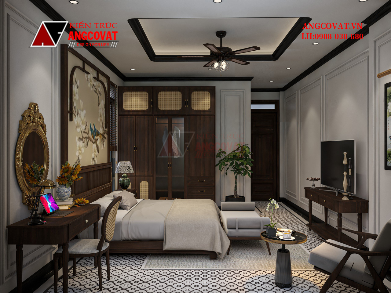 Thiết kế nhà 2 tầng diện tích 180m2 phong cách tân cổ điển 5 phòng ngủ đã đáp ứng được nhu cầu và mong muốn của chủ nhà. Và qua cách bố trí không gian phòng thờ ở tầng 1 cũng tạo một sự thuận tiện nhất định nhằm có sự ấm cúng và giúp gia chủ quan tâm chăm sóc không gian tâm linh một cách chu đáo nhất.