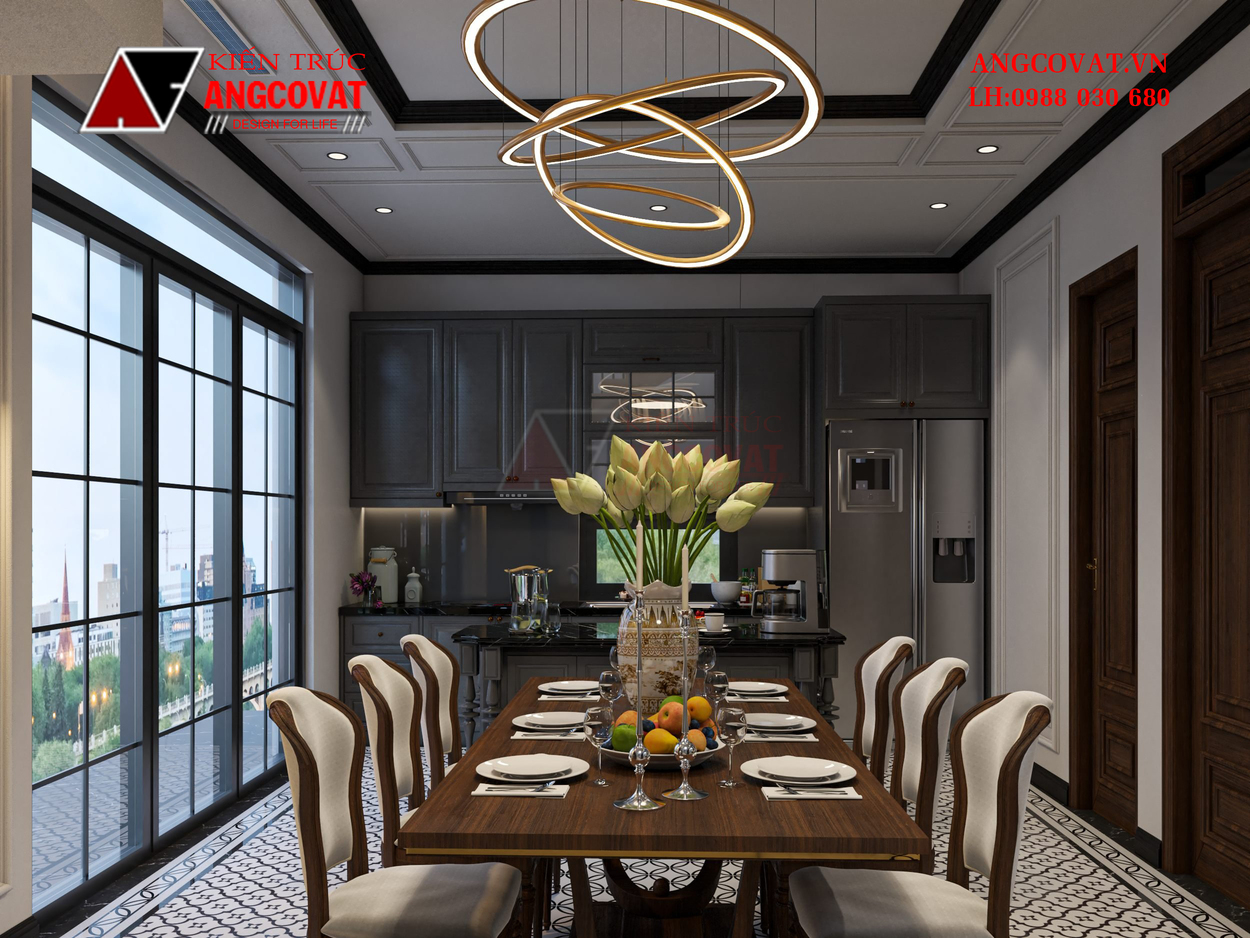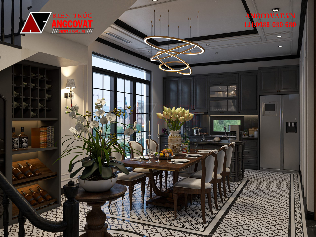 Từng món đồ nội thất – từ bàn ghế, hệ kệ tủ cho đến tay vịn cầu thang hay khung cửa sổ – đều được thiết kế riêng theo kích thước và đặc trưng không gian, đảm bảo tính đồng bộ tuyệt đối. Các điểm nhấn như đèn chùm phong cách Pháp, tranh trang trí thủ công, hay những đường chỉ phào được xử lý tinh xảo thể hiện sự đầu tư công phu và gu thẩm mỹ cao cấp của gia chủ.