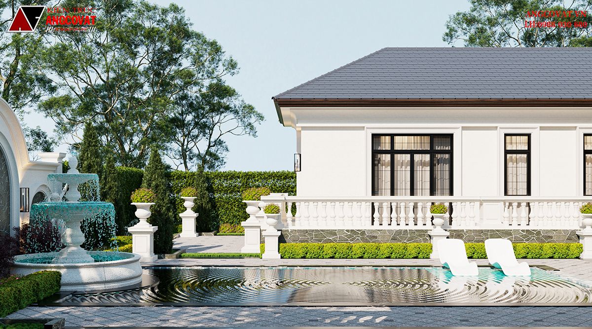 Công trình này không chỉ chú trọng yếu tố vật liệu bền vững – chống thấm – chống nhiệt, mà còn hướng đến thẩm mỹ nghỉ dưỡng và hài hòa thiên nhiên, rất phù hợp với những gia chủ yêu thích sự thanh lịch, nhẹ nhàng mà vẫn sang trọng.