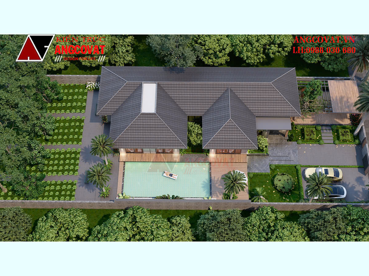 - Gần gũi thiên nhiên: Angcovat thường tích hợp cây xanh, tiểu cảnh hoặc sân thượng trong các mẫu nhà cấp 4 chữ L hoặc chữ U, giúp tối ưu hóa ánh sáng và không khí tự nhiên.