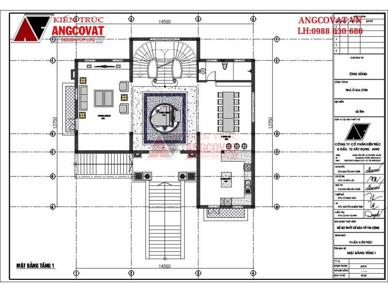 Toàn bộ diện tích sàn tầng 1 của mẫu thiết kế nhà mặt tiền 15m 4 tỷ đồng là không gian sinh hoạt chung và đón tiếp khách khứa của gia đình. Từ cầu thang ngoài trời dẫn lên tầng 1,bạn sẽ bước qua khu vực đại sảnh và bước chân vào sảnh trung tâm của ngôi nhà. Sảnh trung tâm sẽ là nơi nghỉ chân ngắm cảnh của các vị khách trước khi đặt chân vào phòng khách hay sang bếp ăn. Đây được coi như là điểm dừng, bởi vậy yêu cầu đặt ra đối với kiến trúc sư là phải tạo được ấn tượng và sự thoáng đãng cho không gian này. Sự ấn tượng được tạo ra nhờ thiết kế đèn chùm sang trọng với ánh sáng vàng, sàn nhà lát đá hoa cương sang trọng, các chi tiết phào chỉ tinh tế làm nổi bật mảng tường trần,....