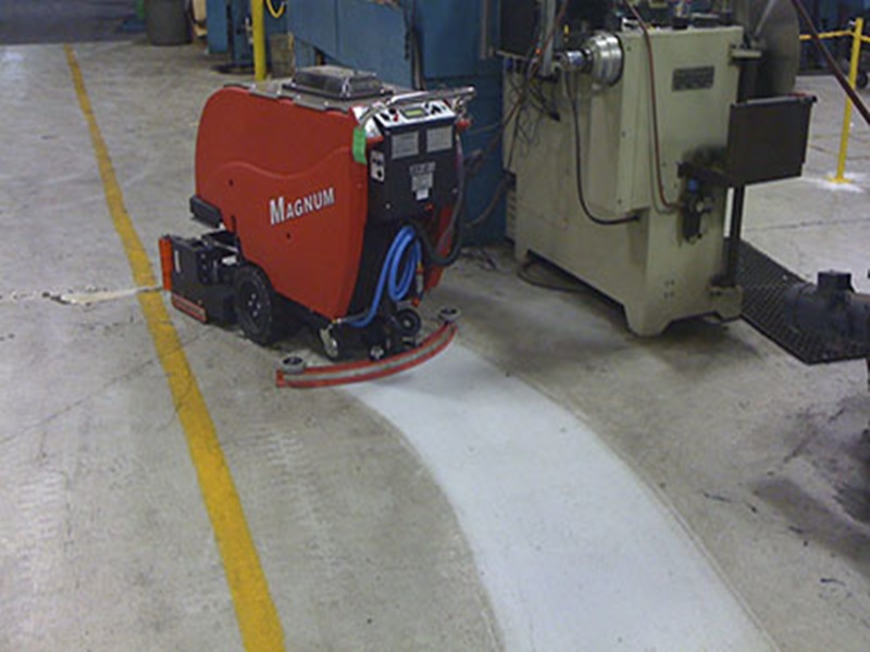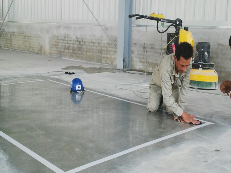 Loại bỏ lớp phủ hiện tại nếu có như lớp epoxy, lớp keo hay lớp phủ hóa chất khác bằng cách sử dụng máy mài với đĩa hợp kim 30 grit. Trám chét, sửa chữa các vết nứt, rỗ lớn trên bề mặt bê tông nếu có và phải kiểm tra mac bê tông từ 250 trở lên.