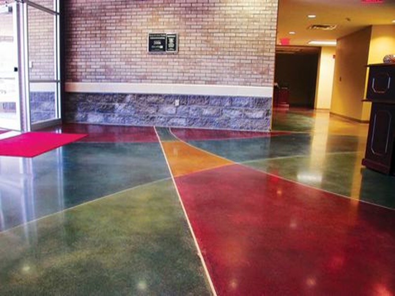 Chú ý: Bạn hoàn toàn có thể nhuộm màu yêu thích cho sàn bê tông mài. Bê tông nhuộm màu là loại bê tông đặc biệt rất đa dạng và phong phú về màu sắc và các loại hoa văn tự nhiên tùy theo thiết kế thiết kế bằng việc kết hợp màu sắc, kỹ thuật trên sàn bê tông. Khác với các dạng sàn bê tông được sơn nước, bê tông nhuộm màu thấm vào bê tông tạo ra những độ sáng mờ khác nhau tùy theo yêu cầu thẩm mỹ. Nhuộm màu bê tông là việc chuyển màu cho vào các vị trí mong muốn trên sàn bê tông. Hầu hết hóa chất axít nhuộm là hỗn hợp nước, axit hydrochloric và các muối kim loại hòa tan.