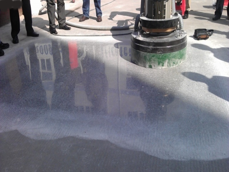 + Kết thúc với một đợt đánh bóng với đĩa kim cương 1500 hoặc 3000 grit tùy thuộc vào mức độ bóng láng mong muốn. Trong bước đánh bóng cuối cùng, một số nhà thầu thường sử dụng một hợp chất đánh bóng có thể tăng cứng chống bụi và tạo độ bóng cho bề mặt bê tông thêm một chút lấp lánh. Các hợp chất này cũng giúp làm sạch bất kỳ dư lượng còn lại trên bề mặt từ quá trình đánh bóng và chống bụi hoàn toàn.