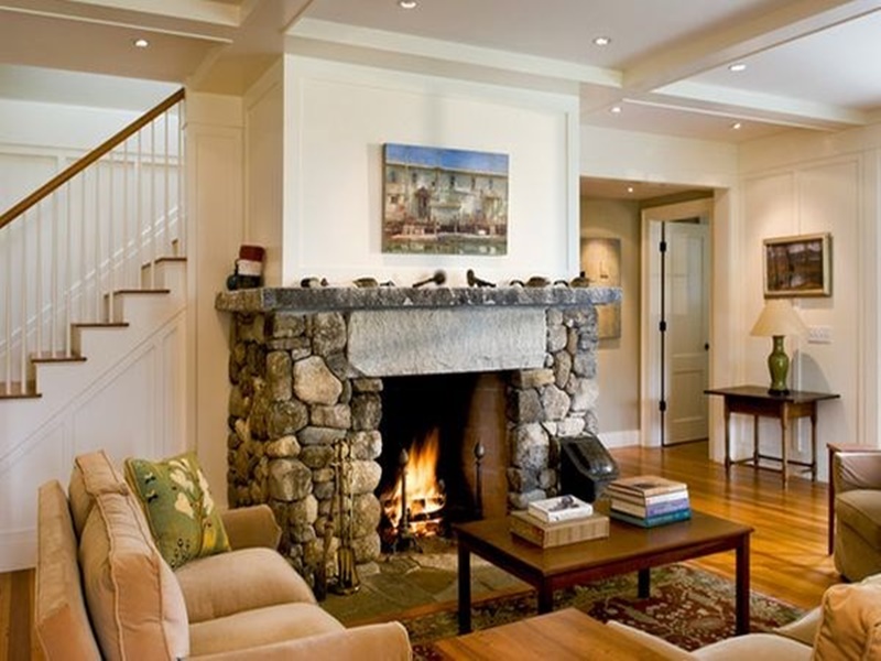 Việc chọn nội thất xung quanh lò sưởi cũng cần đi theo một phong cách nhất định. Từ những bức tranh và lọ hoa trên kệ lò sưởi đến những bức tranh treo tường hay bộ bàn ghế, sofa…đều có sự đồng bộ cho một không gian phòng khách hoàn hảo. Nếu bạn không muốn trang trí quá nhiều cho lò sưởi thì chỉ cần tạo ra một bề mặt lò sưởi ấn tượng bằng cách sơn bức tường màu sắc. Với những màu đậm, tất cả những gì bạn thật sự cần là một ít ánh sáng màu vàng ấm áp để mặt lò sưởi trở thành trung tâm của căn phòng.