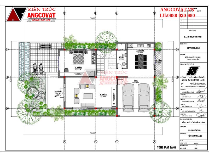 +) Tầng 1: Phòng khách 32m2, Gara ô tô: 27.5m2, Phòng bếp ăn: 20m2, WC1: 5m2, Phòng ngủ 1: 19.5m2.