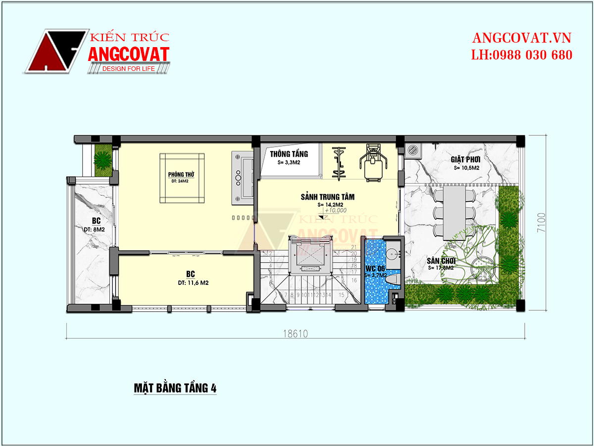 Phòng thờ 24m² hướng hợp mệnh gia chủ, ban công và sân chơi rộng, kết hợp khu giặt phơi tiện nghi.