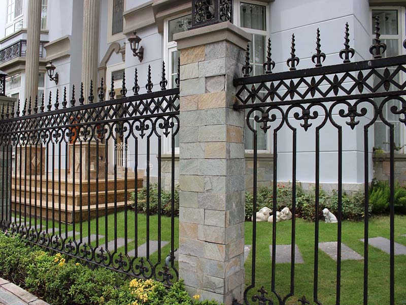 Các mẫu hàng rào sắt hộp đẹp đen kết hợp tường đá bao quanh biệt thự