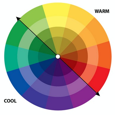Bánh xe màu sắc phân loại màu nóng (phía trên) và màu lạnh (phía dưới)