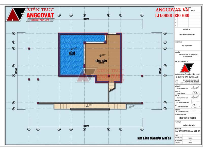 +) Tầng hầm: Diện tích tầng hầm: 38.7m2, Bể cá: 26.5m2