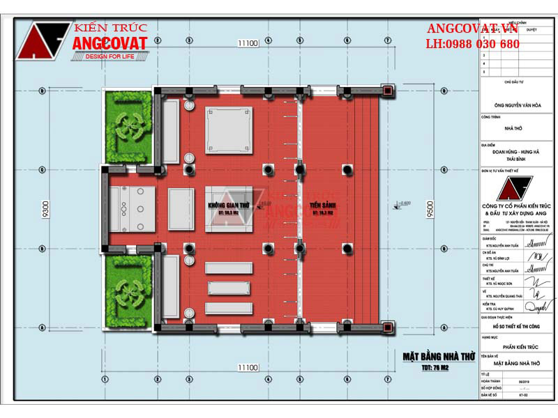 Bản vẽ tổng mặt bằng: Mẫu nhà thờ 3 gian giả gỗ đẹp ở quê