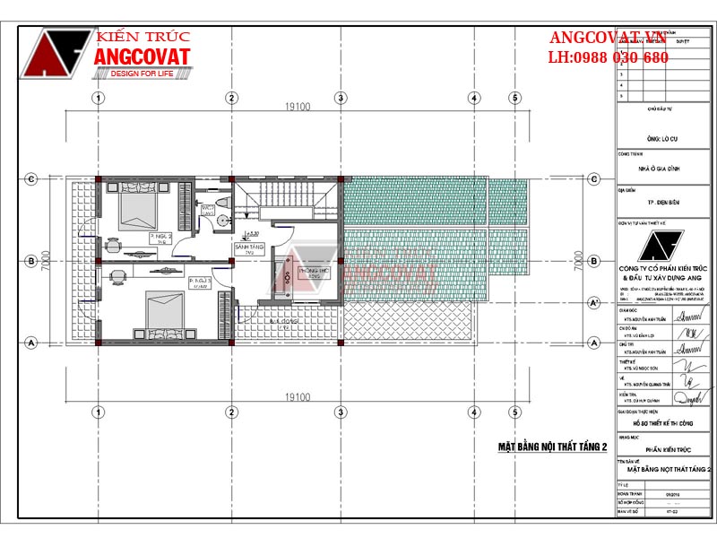 Mẫu số 12: Thiết kế nhà 2 tầng 1 tum 100m2 mái thái giá rẻ đẹp BT105097