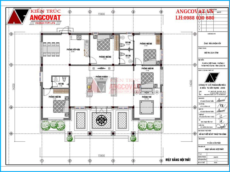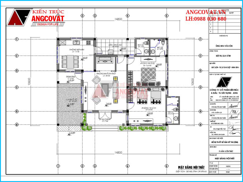 Nội thiết biệt thự 1 tầng mái dốc diện tích 160m2