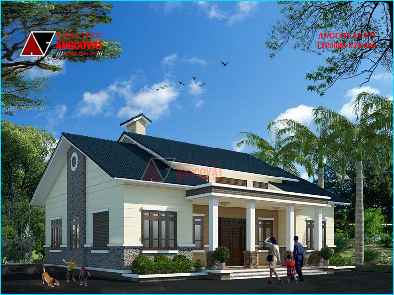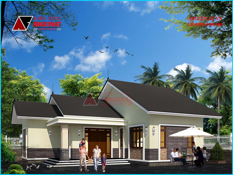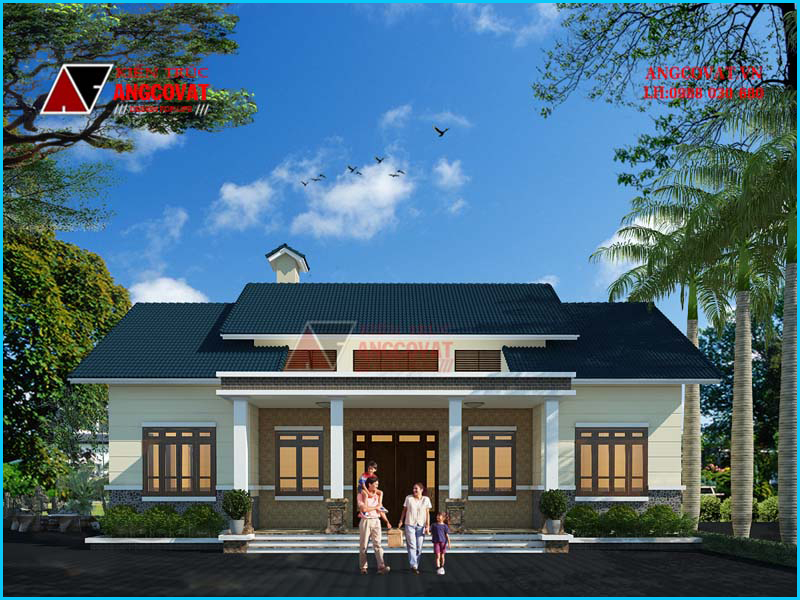 Mẫu số 1: thiết kế nhà cấp 4 mái dốc 120m2 đẹp ở Long An
