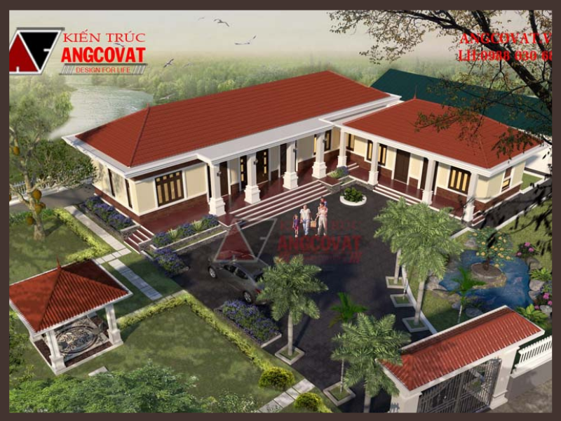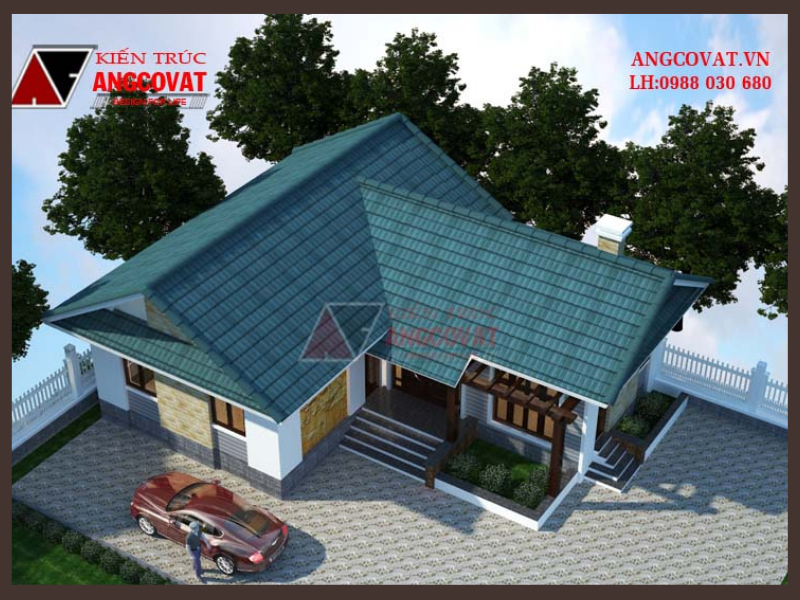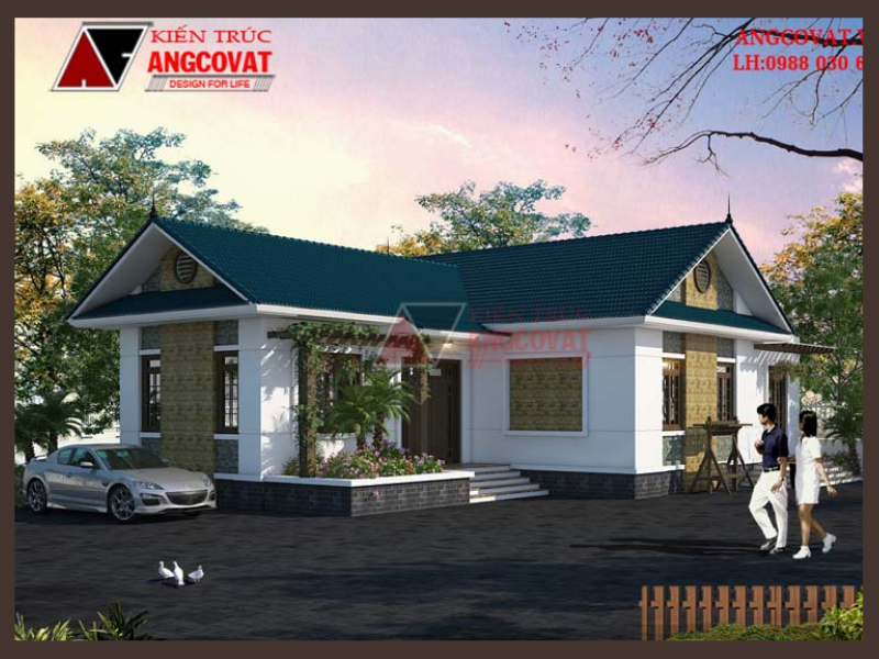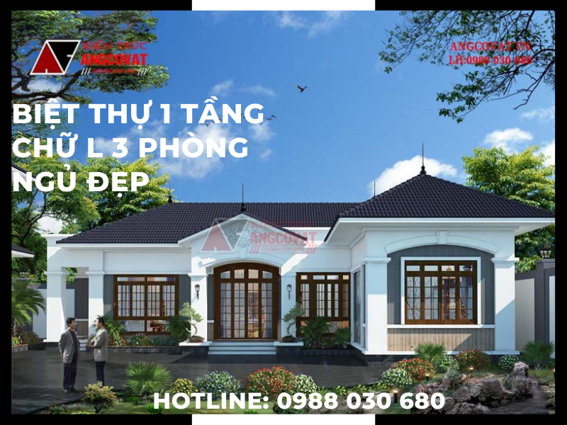 Tham khảo các mẫu thiết kế nhà biệt thự vườn 1 tầng chữ L 3 phòng ngủ của do angcovat thiết kế nhé!