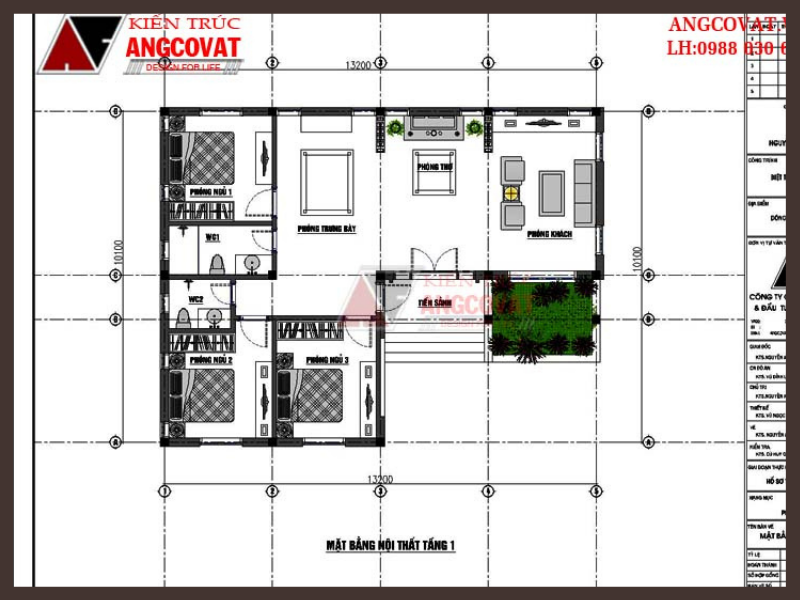 Mọi chi tiết về bản vẽ nhà cấp 4 chữ l 3 phòng ngủ vui lòng liên hệ Hotline: 0988 030 680