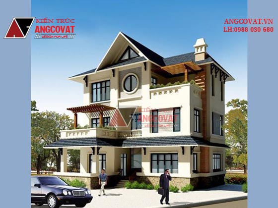 Mẫu 20: Thiết kế biệt thự 3 tầng diện tích nhỏ kiểu mái thái