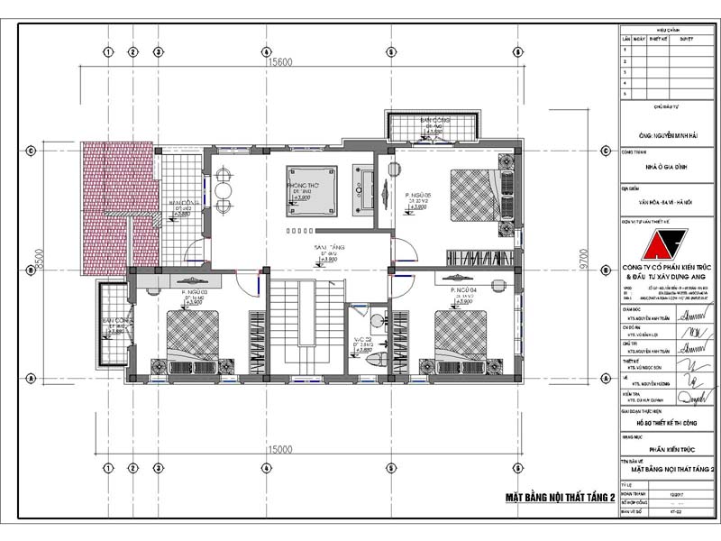- Tầng 2: Phòng thờ 18m2, ban công 6m2, phòng ngủ 3 16m2, ban công của phòng ngủ 3 4 m2, sảnh tầng 8m2, WC2 3.5m2, phòng ngủ 4 16m2, phòng ngủ 5 20m2, ban công của phòng ngủ 5 4m2.