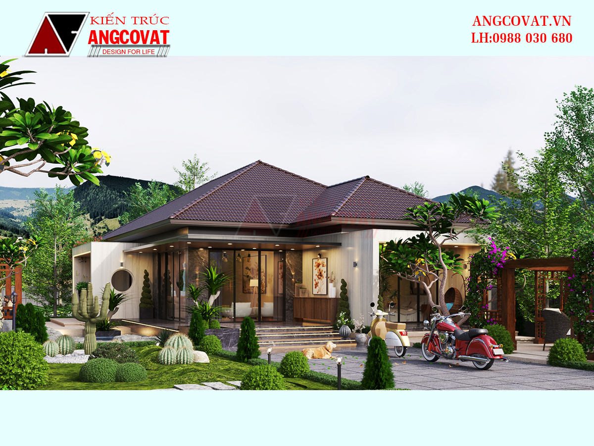 thiết kế nhà cấp 4 3 phòng ngủ sân vườn