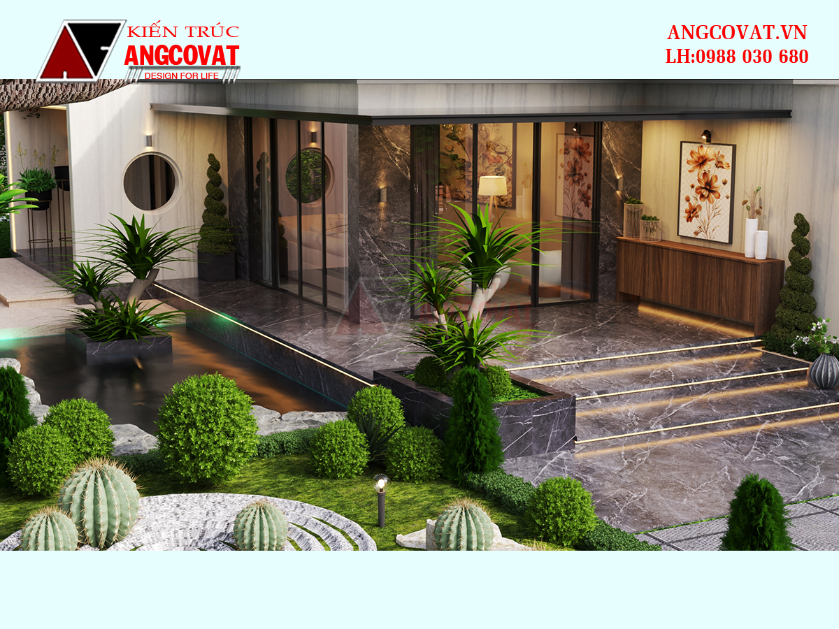 Sân vườn trước nhà: tạo “minh đường” rộng – tượng trưng cho tài lộc, may mắn.